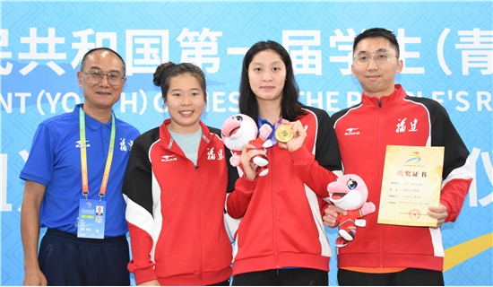 截至11月8日的比賽結(jié)束,福建省代表團(tuán)共獲得4金2銀8銅的好成績。 福建省代表團(tuán)武術(shù)隊(duì) 6日下午,全國第一屆學(xué)生(青年)運(yùn)動會開幕式后的首個比賽日,在廣西壯族自治區(qū)體育館進(jìn)行的校園組武術(shù)套路比賽中,中學(xué)組女子自選長拳比賽項(xiàng)目組,來自福建仙游第一中學(xué)的鄭子冉,憑著優(yōu)異的表現(xiàn)和穩(wěn)定的發(fā)揮,力壓群芳,以9.623分的成績,拿下該組第一名,為福建代表團(tuán)摘得首枚金牌。 鄭子冉和教練一起領(lǐng)獎 福建省代表團(tuán)團(tuán)長李絢觀看比賽并為運(yùn)動員加油 好事成雙,在隨后的大學(xué)組女子自選太極劍項(xiàng)目中,來自集美大學(xué)的石欣以同學(xué)以9.716的優(yōu)異成績,為福建代表隊(duì)再添一枚金牌。 石欣以和教練一起領(lǐng)獎 7日上午舉行的武術(shù)套路比賽大學(xué)組男子自選太極劍項(xiàng)目中,來自集美大學(xué)的石耀文同學(xué)以9.720分的高分,力壓群雄,奪得桂冠,為福建代表團(tuán)摘得第三枚金牌。當(dāng)日,他還在大學(xué)組男子自選太極拳項(xiàng)目比賽中摘得銅牌一枚。 石耀文和教練一起領(lǐng)獎 8日下午,游泳項(xiàng)目大學(xué)乙組女子400米自由泳決賽,來自福建師范大學(xué)的陳張怡,以 04:15.67的成績奪得該項(xiàng)目冠軍,這是福建代表團(tuán)在本屆學(xué)青會(校園組)取得的第四枚金牌。 陳張怡和教練一起領(lǐng)獎 陳張怡和代表團(tuán)成員合影 7日下午,在女子大學(xué)乙組50米仰泳決賽中,來自集美大學(xué)的許伊雪以30.17的成績?yōu)楦=ù韴F(tuán)奪取一枚銀牌。另在之前的比賽中,來自集美大學(xué)的馮烙文在武術(shù)套路南拳項(xiàng)目中獲取銅牌一枚。 馮烙文和教練一起領(lǐng)獎 健美操大學(xué)組男單決賽,來自廈門大學(xué)的吳湘煒同學(xué)摘得銅牌一枚。8日的武術(shù)套路項(xiàng)目,中學(xué)組女子自選棍術(shù)和女子自選刀術(shù)項(xiàng)目比賽,來自廈門尚文實(shí)驗(yàn)學(xué)校的李凌霜為福建代表團(tuán)贏得一銀一銅兩枚獎牌。中學(xué)組女子自選南拳項(xiàng)目比賽,來自連江文筆中學(xué)的余佳澍獲得一枚銅牌。大學(xué)組男子自選槍術(shù)和大學(xué)組女子自選刀術(shù)項(xiàng)目比賽,來自集美大學(xué)的劉宇航和來自廈門大學(xué)的歐陽倩汝為福建代表團(tuán)各添一枚銅牌。 11月5日,第一屆全國學(xué)生(青年)運(yùn)動會在廣西壯族自治區(qū)南寧市開幕。 學(xué)青會由全國青年運(yùn)動會和全國學(xué)生運(yùn)動會合并舉辦,是深化體教融合的重要舉措。本屆學(xué)青會共設(shè)39個大項(xiàng)、805個小項(xiàng),報名參賽運(yùn)動員近1.8萬人。 福建省代表團(tuán)