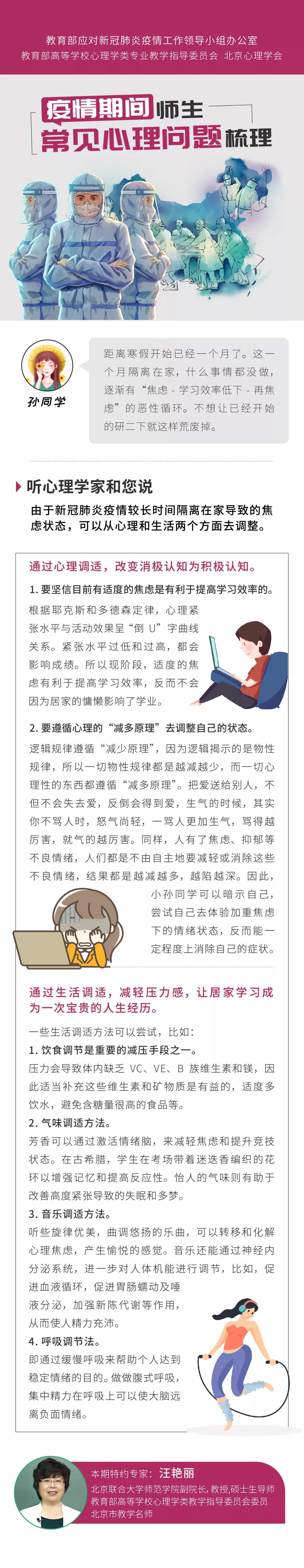 積極的心理狀況是抗擊疫情的重要保障,為了增強大家的“心理免疫力”,教育部應對新冠肺炎疫情工作領導小組辦公室會同教育部高等學校心理學類專業教學指導委員會、北京心理學會,推出特別欄目《用“心”戰“疫”》。用心戰役第七期,我們一起來聽教育部高等學校心理學類專業教學指導委員會特約專家,陸軍軍醫大學馮正直教授、北京聯合大學汪艷麗教授詳解