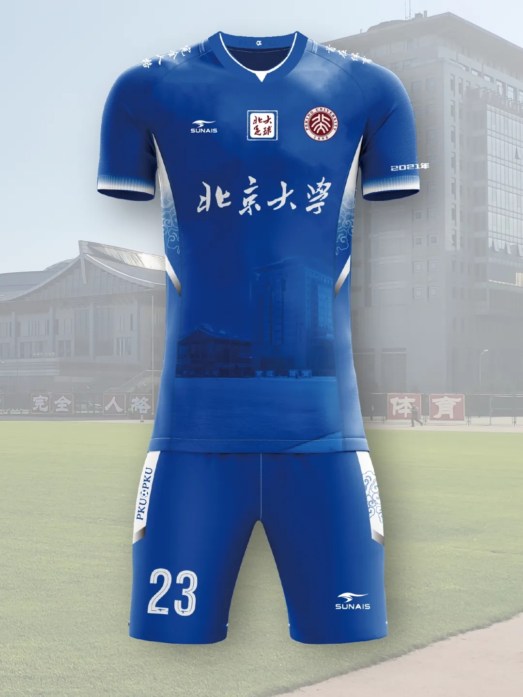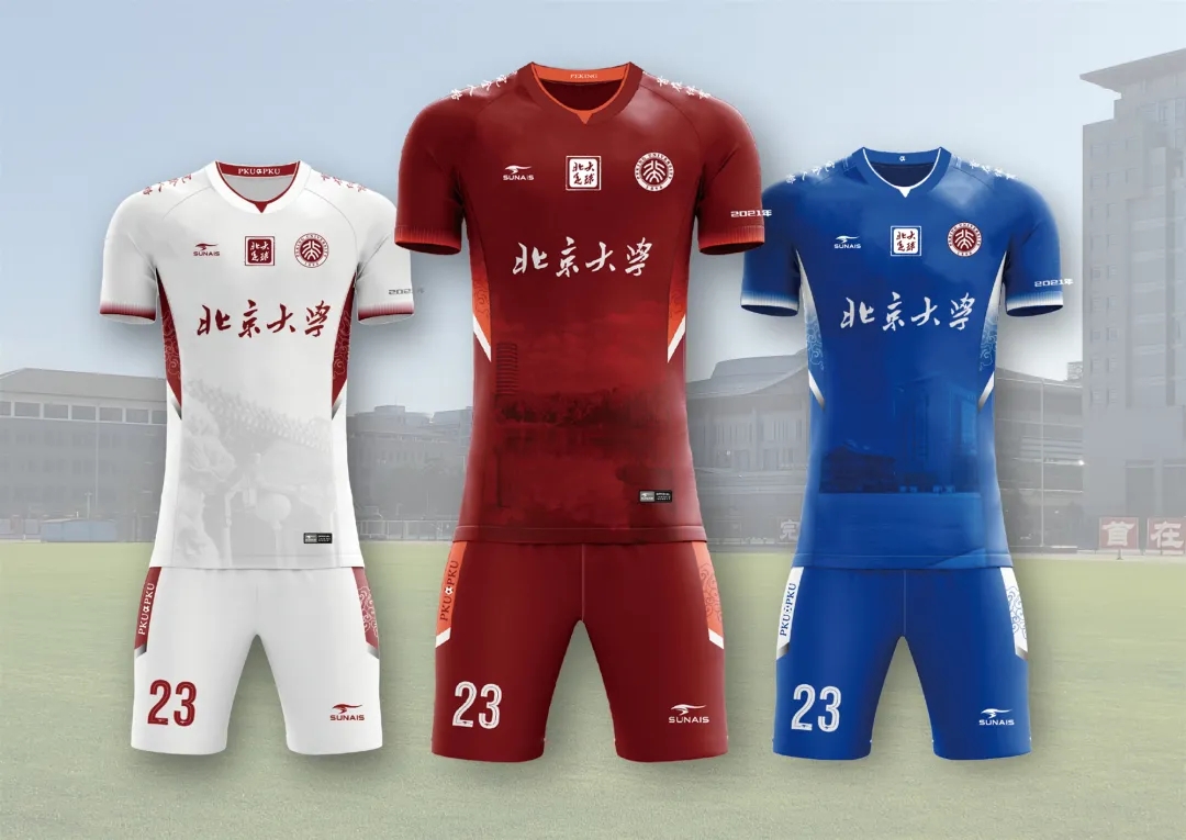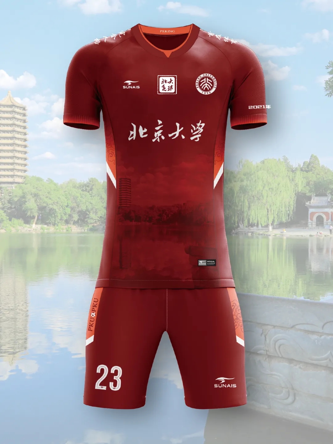 北京大學足球隊攜手舒萊獅體育共同發布球隊2021-2022年度新款球服,新球服分別以北大傳統紅、白、藍為主色,結合北大著名地標與古典云紋圖案,將屬于北大的印記融入其中,以展現北大豐富的自然文化及人文歷史。