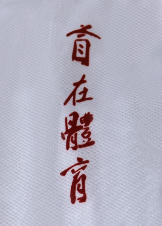雙肩分別印有“完全人格”及“首在體育”。1921年,蔡元培先生主持北大校務后,提出“完全人格,首在體育”的教育思想,他曾對學生提出殷切期望,要有“獅子樣的體力,猴子樣的敏捷,駱駝樣的精神”,這是他認為現代學生必須具備的基本條件。體育教育在學生人格培養有著其他教育內容無法替代的方面,起著積極而重要的作用,有助于學生形成良好的思想道德品質,樹立健康、自信、向上的信念,從而促進人格的健康發展。
