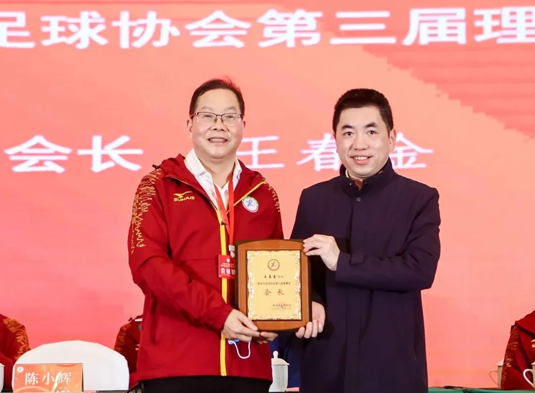 泉州市足協為感謝舒萊獅體育對泉州市足球發展做出的貢獻,王春金會長向丁錦泉總經理頒發了榮譽牌匾。